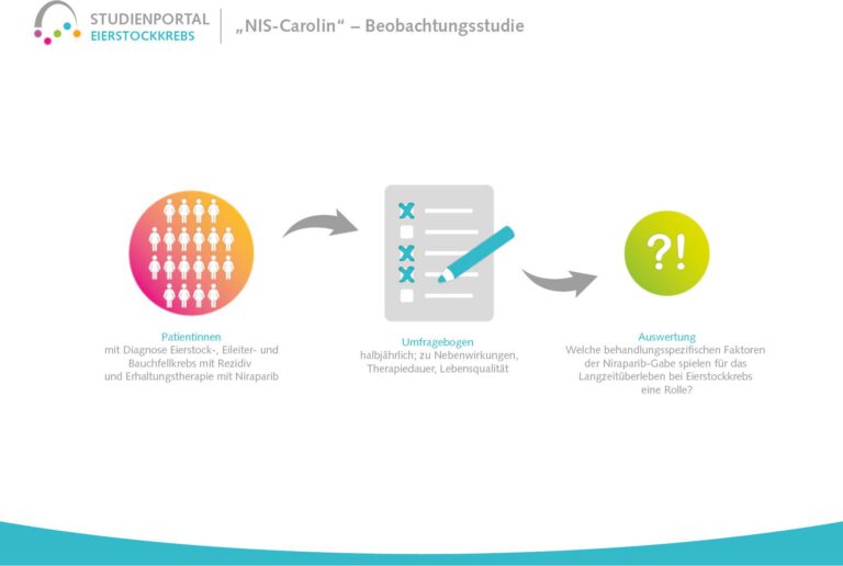 Diese nicht-interventionelle Beobachtungsstudie soll die Langzeittherapie mit Niraparib bei Patientinnen mit platinsensitivem Eierstockkarzinom, die eine Erstdiagnose oder bereits einen Rückfall (Rezidiv) erlitten haben, untersuchen und Faktoren identifizieren, die mit einem Langzeitüberleben verbunden sind. Niraparib ist ein sogenannter PARP-Inhibitor, der die Wirkung der Chemotherapie nach ihrem Abschluss verlängert, indem er die Reparaturmechanismen in den von der Chemotherapie geschädigten Krebszellen unterdrückt. Die beschädigten Zellen können sich dann nicht regenerieren, sondern sterben ab.